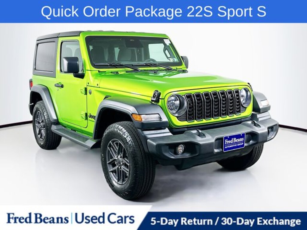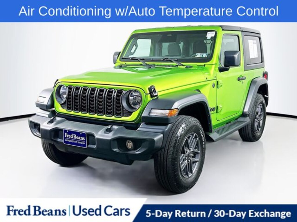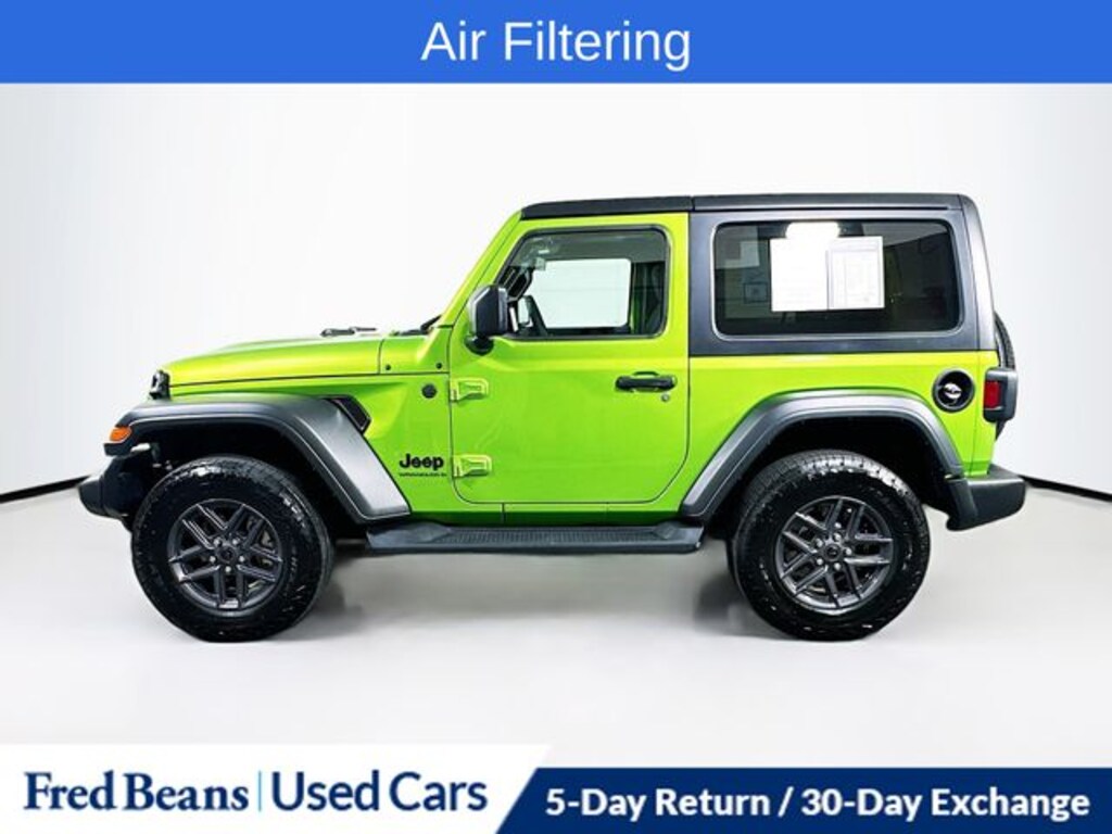 Recent Arrival! 2025 Jeep Wrangler Sport S 2.0L I4 DOHC 8-Speed Automatic 4WD 2D Sport Utility Mojito Clearcoat 2-Door Passive Entry, Front Door Locks, Advanced Brake Assist, Air Conditioning w/Auto Temperature Control, Air Filtering, Apple CarPlay/Android Auto, Automatic Headlamps, Cluster 7.0" TFT Color Display, Convenience Group, Corning Gorilla Glass, Deep Tint Sunscreen Windows, Emergency/Assistance Call, Enhanced Adaptive Cruise Control, Full Speed Forward Collision Warning Plus, Heated Front Seats, Heated Steering Wheel, Power Heated Mirrors, Premium Wrapped Steering Wheel, Quick Order Package 22S Sport S, Remote Start System, Security Alarm, Sun Visors w/Illuminated Vanity Mirrors, Universal Garage Door Opener, Wheels: 17" x 7.5" Gray.