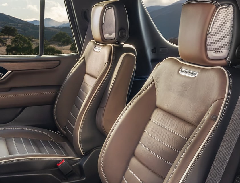 The GMC Yukon keeps you connected and engaged with its advanced infotainment system. Front and center is a large 16.8-inch diagonal premium GMC Infotainment System with a high-contrast color touchscreen display. This smart system offers navigation, connected apps, personalized driver profiles, and natural voice recognition to make accessing your favorite features a breeze. You can also sync your compatible smartphone via wireless Apple CarPlay or Android Auto to enjoy your music, podcasts, and apps on the go. The available Bose Performance Series sound system surrounds you with up to 22 speakers strategically placed throughout the cabin.