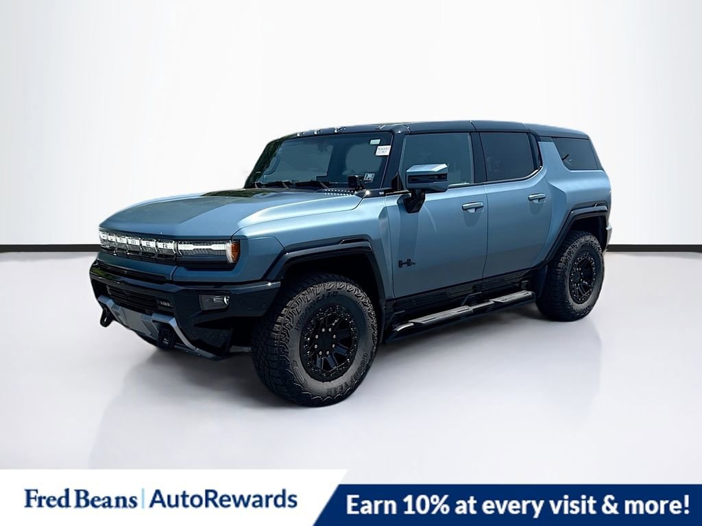 Neptune Blue Matte 2024 GMC Hummer EV SUV 3X 4WD 1-Speed Automatic Electric Motor 1-Motor Front Drive Unit, 10.49 Final Drive Ratio, 12-Way Power Driver Seat Adjuster, 12-Way Power Passenger Seat Adjuster, 14 Speakers, 4-Wheel Disc Brakes, ABS brakes, Accessory Touch-Screen Control Switches (LPO), Adaptive suspension, Air Conditioning, All-Weather eTrunk Mat (LPO), Alloy wheels, AM/FM radio: SiriusXM with 360L, Apple CarPlay/Android Auto, Auto High-beam Headlights, Auto-dimming door mirrors, Auto-dimming Rear-View mirror, Automatic temperature control, Black Rear D-Ring Recovery Hook (LPO), Black Wheel Center Cap (LPO), Bose Centerpoint Premium 14-Speaker Surround Sound, Brake assist, Compass, Delay-off headlights, Driver door bin, Driver Memory, Driver vanity mirror, Driver-Selectable Front Differential, Driver-Selectable Rear Differential, Dual front impact airbags, Dual front side impact airbags, Electronic Stability Control, Emergency communication system: OnStar, Extreme Off-Road Package, Four wheel independent suspension, Front & Rear Air Ride Adaptive Suspension, Front anti-roll bar, Front Bucket Seats, Front Center Armrest, Front dual zone A/C, Front Footwell Interior LED Lighting Kit (LPO), Front Off-Road Auxiliary Lights (LPO), Front reading lights, Garage door transmitter, Heated door mirrors, Heated Driver & Front Passenger Seats, Heated front seats, Heated rear seats, Heated steering wheel, Illuminated entry, Illumination Package (LPO), Infinity Roof, Low tire pressure warning, Memory seat, Navigation System, Occupant sensing airbag, Omega Edition, Outside Rearview Mirror Projection Lights (LPO), Outside temperature display, Overhead console, Panic alarm, Passenger door bin, Passenger vanity mirror, Performance Red Emblems (LPO), Power door mirrors, Power driver seat, Power passenger seat, Power steering, Power windows, Preferred Equipment Group 1SG, Premium audio system: Premium GMC Infotainment System, Premium Carpet Floor Inserts (LPO), Premium Front Bucket Seats w/Center Console, Premium Leather-Alternative Seating Surfaces, Radio data system, Radio: AM/FM Audio System, Rain sensing wipers, Rear air conditioning, Rear reading lights, Rear seat center armrest, Rear window defroster, Remote keyless entry, Rocker Protectors w/Assist Steps (LPO), Security system, SiriusXM w/360L, Speed control, Speed-sensing steering, Split folding rear seat, Steering wheel memory, Steering wheel mounted audio controls, Telescoping steering wheel, Thatcham Wheel Locks (LPO), Tilt steering wheel, Traction control, Trip computer, Turn signal indicator mirrors, Underbody Cameras, Variably intermittent wipers, Ventilated Driver & Front Passenger Seats, Ventilated front seats, Wheels: 18 Gloss Black Beadlock (LPO), Wheels: 18 x 9 Black Aluminum w/Machined Accents, Wheels: 22 x 9.5 Premium Finish Aluminum, Wireless Phone Projection.