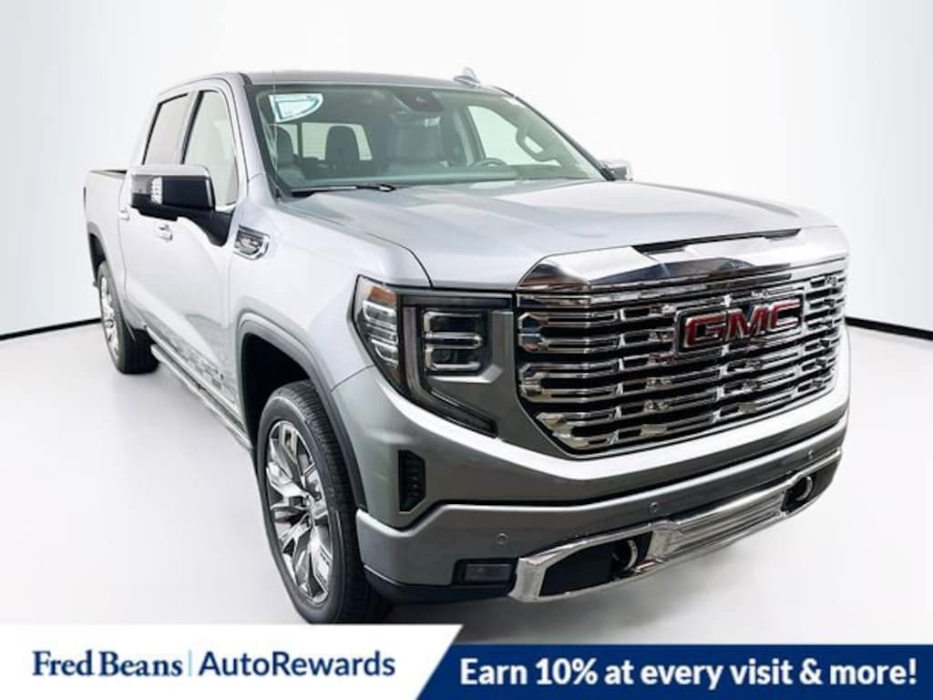 Sterling Metallic 2025 GMC Sierra 1500 Denali 4WD 10-Speed Automatic EcoTec3 6.2L V8 10-Speed Automatic, 4WD, Black Leather.