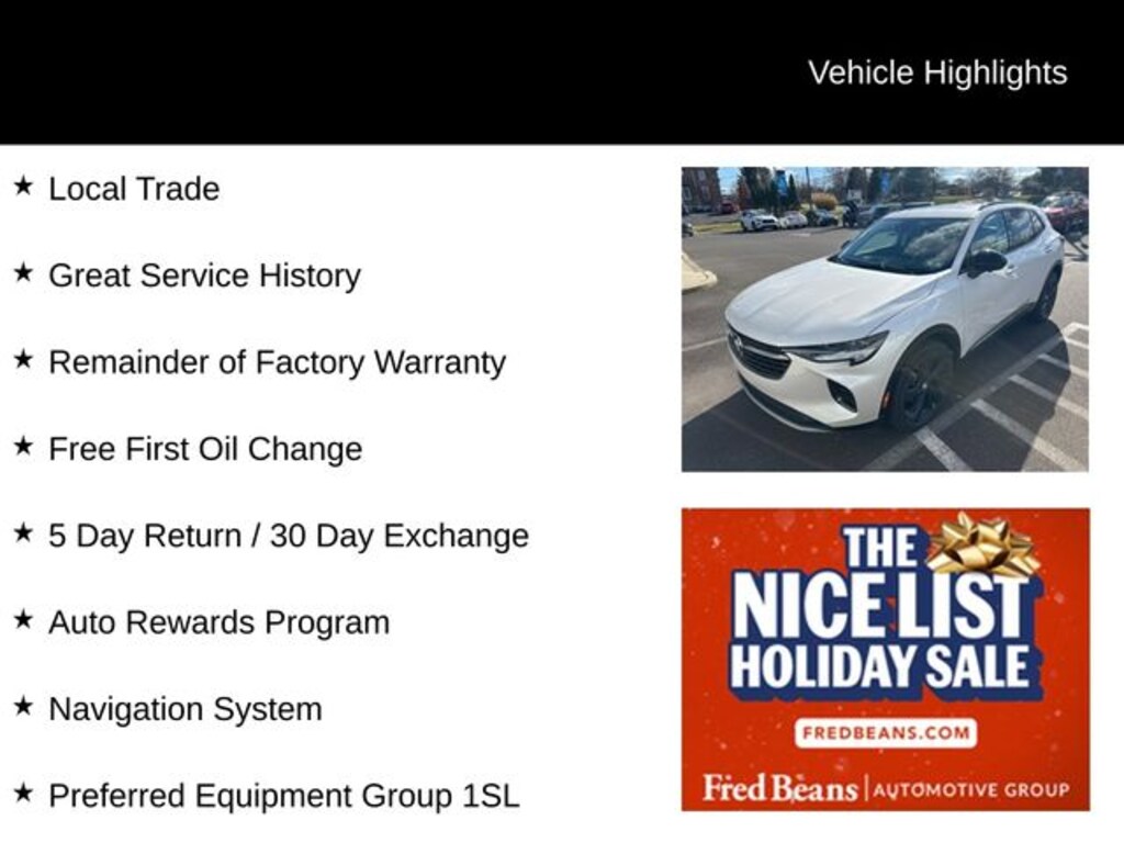 2023 Buick Envision Essence Essence 2.0L Turbocharged 9-Speed Automatic AWD 4D Sport Utility White Frost Tricoat Local Trade, Great Service History, Remainder of Factory Warranty, Free First Oil Change, 5 Day Return / 30 Day Exchange, Auto Rewards Program, 3-Channel Programmable Universal Home Remote, Auto High-beam Headlights, Auto-dimming Rear-View mirror, Black Roof Rails, Body-Color Door Handles, Bose Premium 9-Speaker Audio System Feature, Front & Rear Park Assist, Front dual zone A/C, Head-Up Display, Heated Driver & Front Passenger Seats, Heated steering wheel, Illuminated entry, IntelliBeam Headlamp Control w/Auto High Beam, Memory seat, Navigation System, Power driver seat, Power Liftgate, Power Panoramic Tilt-Sliding Moonroof, Preferred Equipment Group 1SL, Radio: Buick Infotainment System AM/FM w/Nav, Rear Cargo Compartment Cover, Sport Alloy Pedals, Sport Touring Package, Steering wheel mounted audio controls, Technology Package I, Wheels: 20" Aluminum w/Dark Finish, Wireless Apple CarPlay/Wireless Android Auto.