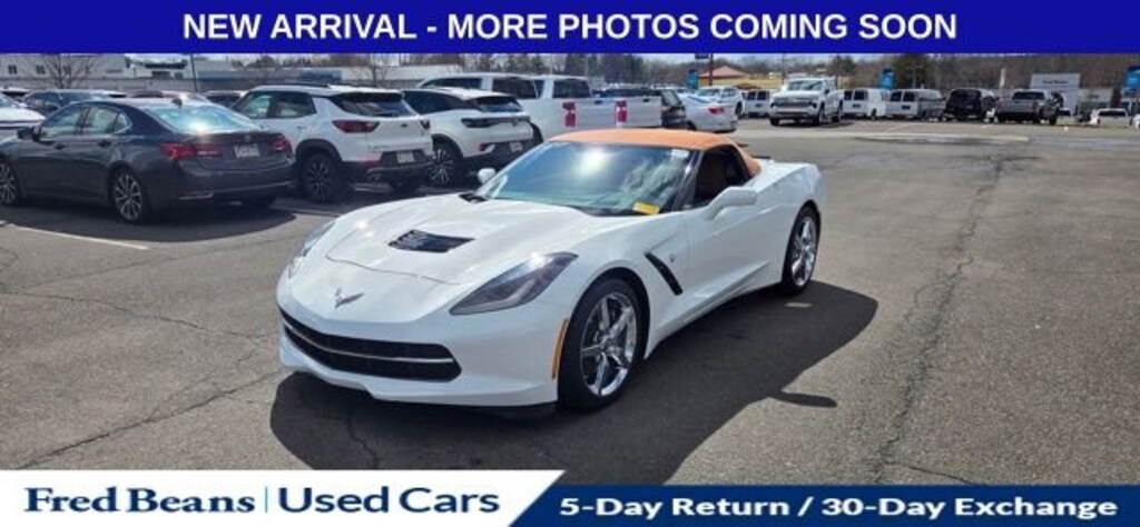 Experience the thrill of pure performance in this stunning 2015 Chevrolet Corvette Stingray 2LT. With its sleek white exterior and powerful 6.2L V8 engine, this Corvette is engineered to deliver an unparalleled driving experience. Boasting an impressive 29 highway MPG, this sports car combines exceptional efficiency with uncompromising power, making it the perfect choice for the discerning driver.- 5 Day Return / 30 Day Exchange- Auto Reward Program- 8-Speed Paddle Shift Automatic Transmission- Bose Advanced 10-Speaker Audio System- Head-Up Display- Universal Home Remote- Theft Deterrent System- Heated & Vented Driver & Passenger Seats- Power Lumbar/Bolster Seat Adjusters- Navigation SystemThis Corvette Stingray 2LT is packed with premium features that elevate the driving experience. The 2LT Preferred Equipment Group, including the Performance Data and Video Recorder, allows you to capture and review your driving adventures. The chrome aluminum wheels and body-color heated power-adjustable mirrors add a touch of refined style, while the Auto-Dimming Inside Frameless Rearview Mirror and Cargo Net provide convenience and practicality.Slip behind the wheel of this Corvette and experience the thrill of the open road. The Bose Premium Audio System and Navigation System will keep you entertained and connected, while the Theft Deterrent System and Remote Vehicle Starter System provide added peace of mind. The Heated and Vented Seats and Power Lumbar/Bolster Adjusters ensure maximum comfort, no matter the journey.With its exceptional performance, advanced technology, and premium amenities, this 2015 Chevrolet Corvette Stingray 2LT is a true driver's dream. Discover the joy of owning a sports car that combines stunning design, exhilarating power, and uncompromising luxury. Visit our showroom today and let us demonstrate why this Corvette is the perfect addition to your garage.