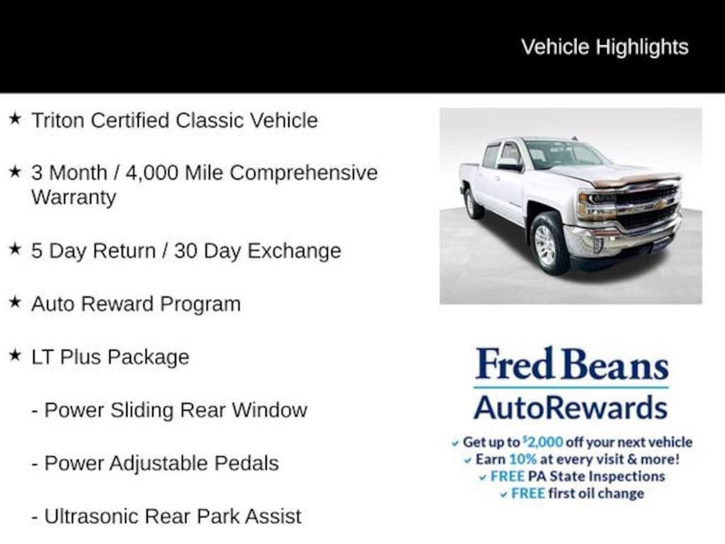 Experience the power and capability of the 2018 Chevrolet Silverado 1500 LT LT1. This impressive truck is equipped with a robust 5.3L EcoTec3 V8 engine, delivering impressive power and efficiency with 355 horsepower and 383 lb-ft of torque. Paired with a smooth-shifting 6-speed automatic transmission and capable 4-wheel drive system, this Silverado is ready to tackle any task with confidence.Elevate your driving experience with a host of premium features, including:- 3 Month / 4,000 Mile Comprehensive Warranty- 5 Day Return / 30 Day Exchange- Auto Reward Program- Chevrolet MyLink Radio with 8 Diagonal Color Touchscreen- Dual-Zone Automatic Climate Control- Electric Rear-Window Defogger- 110-Volt AC Power Outlet- Power Sliding Rear Window- Remote Vehicle Starter System- Universal Home Remote- Thin Profile LED Fog Lamps- Power Adjustable Pedals- Ultrasonic Rear Park AssistThis Silverado also boasts the All Star Edition and LT Plus Package, providing a wealth of additional convenience and technology features to enhance your driving experience.Certified as a Triton Certified Classic Vehicle, this 2018 Chevrolet Silverado 1500 LT LT1 has been meticulously inspected and reconditioned to meet our highest standards. With just 65,295 miles on the odometer, this truck is ready to provide years of reliable service.Slip behind the wheel and experience the commanding presence of the Silverado. Enjoy the smooth ride and responsive handling, while the spacious, well-appointed interior offers comfort and convenience for both you and your passengers. Whether you're tackling tough jobs or hitting the open road, this Silverado is the perfect companion.We're confident this 2018 Chevrolet Silverado 1500 LT LT1 will exceed your expectations. Visit our showroom today and let us demonstrate how this exceptional truck can enhance your driving experience. We're here to ensure you drive away in the perfect vehicle to meet your needs and exceed your expectations.