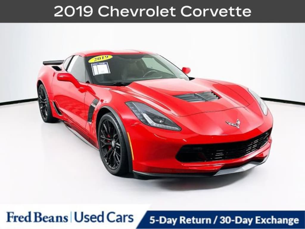 The 2019 Chevrolet Corvette Z06 in Torch Red is an unmistakable blend of American muscle and track-ready performance. Its bold, aerodynamic design features aggressive lines, a low-slung stance, and a wide body that exudes power from every angle. The deep, glossy Torch Red paint highlights the sculpted curves and carbon-fiber accents, giving it an unmistakable presence whether parked or in motion.