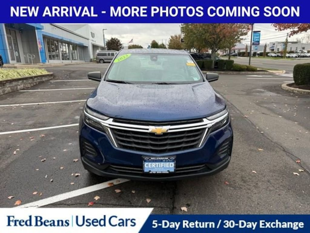 Clean CARFAX. CARFAX One-Owner.Recent Arrival! 2023 Chevrolet Equinox LS 1.5L DOHC 6-Speed Automatic Electronic with Overdrive FWD 4D Sport Utility Blue Glow MetallicOdometer is 10236 miles below market average!Certified. Chevrolet Certified Pre-Owned Details:* 24 months/24,000 miles (whichever comes first) Certified Pre-Owned Scheduled Maintenance Plan and 3 days/150 miles (whichever comes first) Vehicle Exchange Program. SiriusXM 3-month trial subscription.* Transferable Warranty* Roadside Assistance* Powertrain Limited Warranty: 72 Month/100,000 Mile (whichever comes first) from original in-service date* Vehicle History* 172 Point Inspection* Warranty Deductible: $0* Limited Warranty: 12 Month/12,000 Mile (whichever comes first) from certified purchase dateFor better peace of mind all our used vehicles have a 127-point inspection and come with a 5-day return, 30-day exchange (As-Is vehicles are excluded). Our exclusive Auto Rewards Program provides better value with Free First Oil change, Free Pa State Safety inspections, discounts for local merchants and more. Plus, you can earn up to $2000 towards your next vehicle just by servicing with Fred Beans! As Fred Beans always says, our used cars are better because our reputation depends on it.Although every reasonable effort has been made to ensure the accuracy of the information contained on this site, absolute accuracy cannot be guaranteed. This site, and all information and materials appearing on it, are presented to the user as is without warranty of any kind, either express or implied. All vehicles are subject to prior sale. Price does not include applicable tax, title, license, processing and/or documentation fees. Vehicles shown at different locations are not currently in our inventory (Not in Stock) but can be made available to you at our location within a reasonable date from the time of your request, not to exceed one week. Residency restrictions may apply.