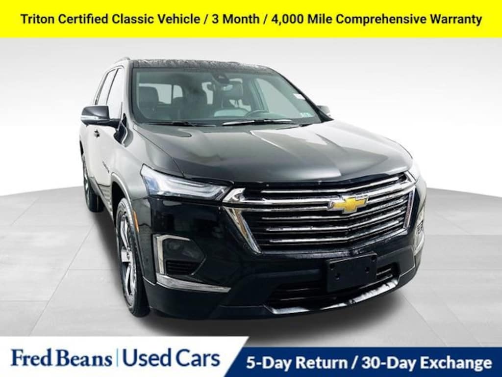 Discover the ultimate family-friendly SUV in the 2023 Chevrolet Traverse LT Leather. This exceptional vehicle combines style, performance, and unparalleled versatility, making it the perfect choice for your next adventure.- Triton Certified Classic Vehicle- 3 Month / 4,000 Mile Comprehensive Warranty- 5 Day Return / 30 Day Exchange- Auto Reward Program- LT Premium Package- Dual SkyScape 2-Panel Power Sunroof- Navigation System- Bose Premium 10-Speaker Audio System- Adaptive Cruise Control- Enhanced Automatic Emergency BrakingPowered by a robust 3.6L V6 engine and equipped with all-wheel drive, the Traverse LT Leather delivers a smooth and confident driving experience, whether navigating city streets or tackling winding roads. With a spacious interior and seating for up to eight, this SUV is the perfect companion for your growing family, offering ample room for passengers and cargo alike.The Traverse LT Leather is more than just a practical choice; it's a statement of style. The sleek, modern exterior design and 20-inch machined face aluminum wheels with Technical Gray pockets give this SUV a sophisticated, head-turning appearance. Step inside, and you'll be greeted by a wealth of premium features, including the Chevrolet Infotainment 3 Plus system with connected navigation, a Bose premium 10-speaker audio system, and a rear camera mirror with washer for enhanced visibility.As a Triton Certified Classic Vehicle, this 2023 Chevrolet Traverse LT Leather has undergone a rigorous inspection and reconditioning process to ensure it meets the highest standards of quality and reliability. With a 3-month/4,000-mile comprehensive warranty and a 5-day return/30-day exchange policy, you can purchase with confidence, knowing that your investment is protected.Experience the ultimate in family-focused luxury and performance with the 2023 Chevrolet Traverse LT Leather. Visit our showroom today to take this exceptional SUV for a test drive and discover why it's the perfect fit for your lifestyle.