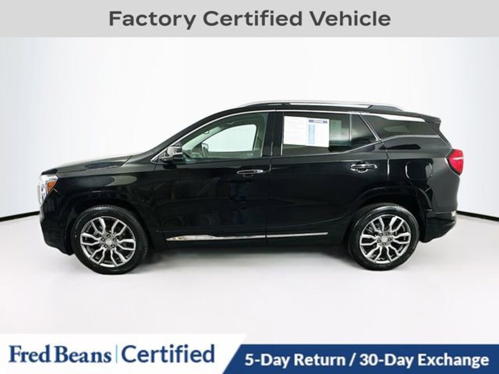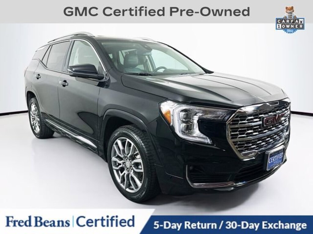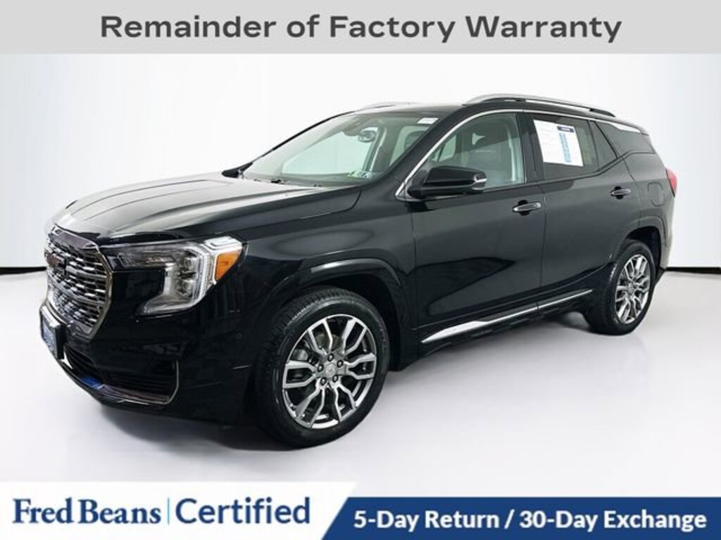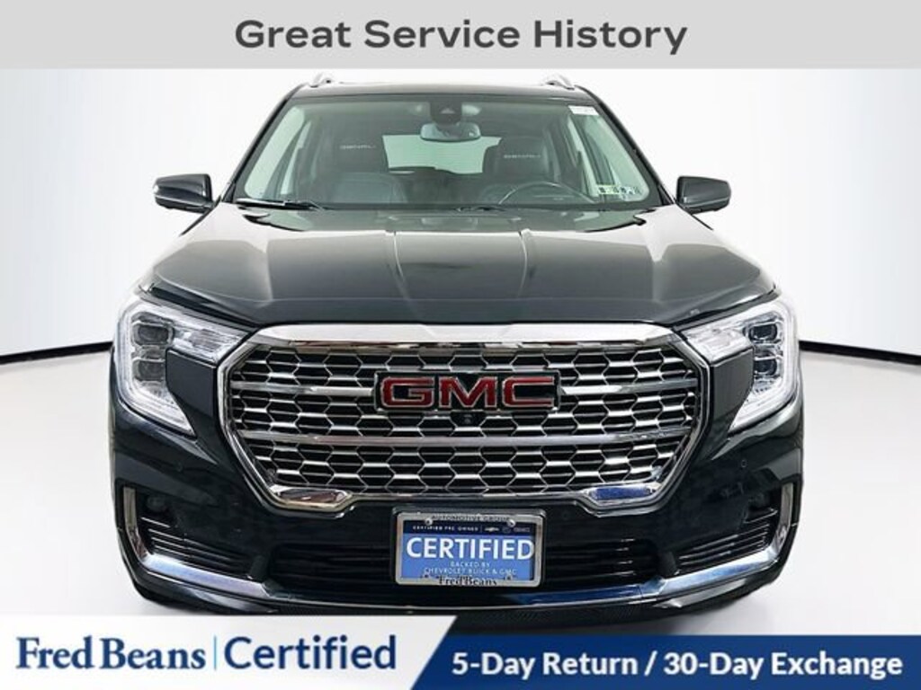 Elevate your driving experience with this exceptional 2022 GMC Terrain Denali. This meticulously maintained, factory-certified SUV offers a remarkable blend of style, performance, and advanced technology, making it the perfect choice for discerning drivers.Highlights of this well-equipped Terrain Denali include: Great Service History Remainder of Factory Warranty Factory Certified Vehicle SUNROOF, SKYSCAPE POWER WITH POWER SUNSCREEN DENALI PREMIUM PACKAGE Ebony Twilight Metallic Exterior License Plate Front Mounting PackageThe Terrain Denali's 1.5L DOHC engine, paired with a responsive 9-Speed Automatic transmission and available All-Wheel Drive, delivers a dynamic and efficient driving experience. With an EPA-estimated 25 city/28 highway MPG, this SUV strikes the perfect balance between power and fuel economy.Inside, the Terrain Denali's premium cabin features luxurious Perforated Leather-Appointed Seat Trim, Heated and Ventilated Front Seats, and a Heated Steering Wheel, providing exceptional comfort and convenience. The advanced GMC Infotainment System with Navigation, Wireless Apple CarPlay/Android Auto, and a Premium 7-Speaker Bose Sound System, keep you connected and entertained on every journey.Elevate your driving experience with this exceptional 2022 GMC Terrain Denali. As a Certified Pre-Owned vehicle, it comes with a comprehensive 172-point inspection, 12-month/12,000-mile limited warranty, 72-month/100,000-mile powertrain warranty, and a 24-month/24,000-mile Certified Pre-Owned Scheduled Maintenance Plan. Visit our showroom today and discover the unparalleled value and peace of mind this Terrain Denali can bring to your daily commute and weekend adventures.