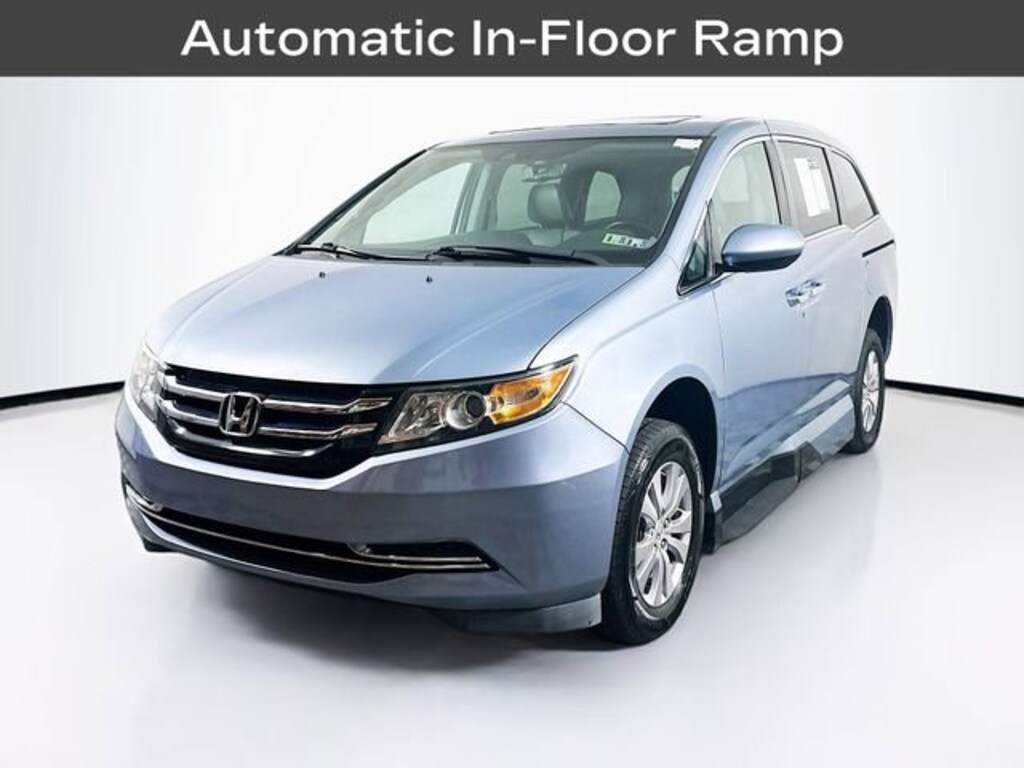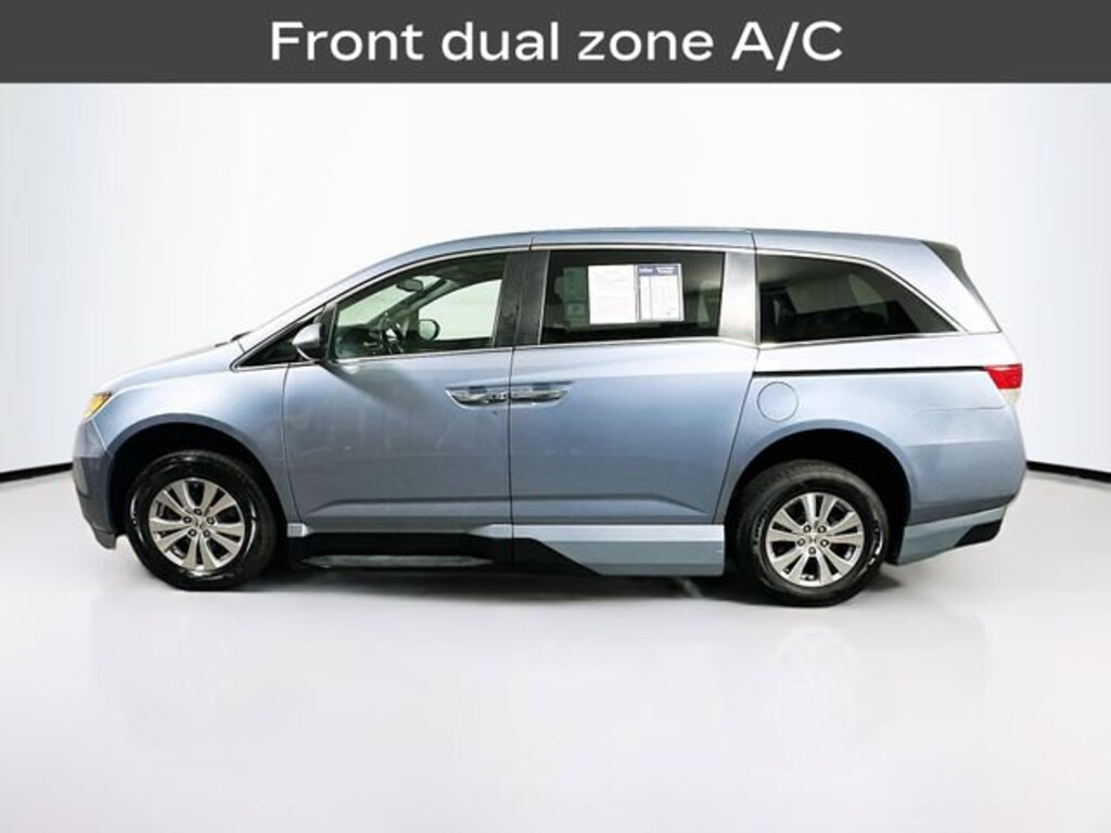 2014 Honda Odyssey Mobility Van EX-L 3.5L V6 SOHC i-VTEC 24V 6-Speed Automatic FWD 4D Passenger Van Blue ABS brakes, Alloy wheels, Bumpers: body-color, Electronic Stability Control, Front dual zone A/C, Heated door mirrors, Heated Front Bucket Seats, Heated front seats, Illuminated entry, Leather Seat Trim, Low tire pressure warning, Power door mirrors, Power Liftgate, Power moonroof, Remote keyless entry, Spoiler, Traction control.