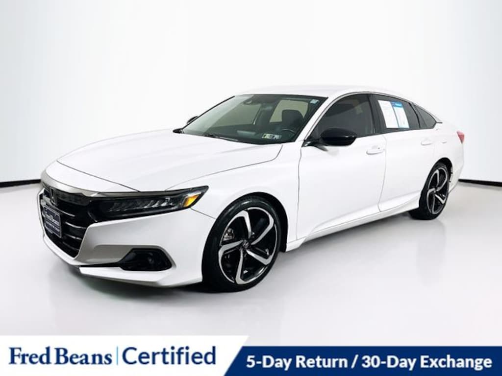 2021 Honda Accord Sport Special Edition Sport Special Edition 1.5T I4 DOHC 16V Turbocharged VTEC CVT FWD 4D Sedan White Local Trade, Great Service History, Triton Certified Vehicle, 7 Year / 100k Powertrain Warranty, 12 Month / 12,000 Mile Comprehensive Warranty, Free First Oil Change, 5 Day Return / 30 Day Exchange, Auto Rewards Program, Black Leather, Adaptive Cruise Control: Adaptive Cruise Control (ACC) with Low-Speed Follow, Apple CarPlay/Android Auto, Automatic temperature control, Brake assist, Electronic Stability Control, Forward collision: Collision Mitigation Braking System (CMBS) + FCW mitigation, Front dual zone A/C, Front fog lights, Fully automatic headlights, Heated door mirrors, Heated Front Bucket Seats, Lane Departure Warning System, Leather-Trimmed Seats, Power driver seat, Power passenger seat, Radio: 180-Watt AM/FM Audio System, Remote keyless entry, Security system, Split folding rear seat, Spoiler, Steering wheel mounted audio controls, Wheels: 19" Machine-Finished Alloy w/Black Inserts.