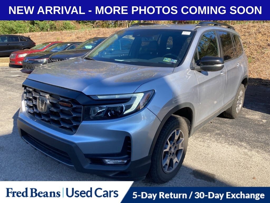 Recent Arrival! 2023 Honda Passport TrailSport 3.5L V6 24V SOHC i-VTEC 9-Speed Automatic AWD 4D Sport Utility Lunar Silver Metallic Local Trade, Great Service History, Remainder of Factory Warranty, Free First Oil Change, Auto Reward Program.