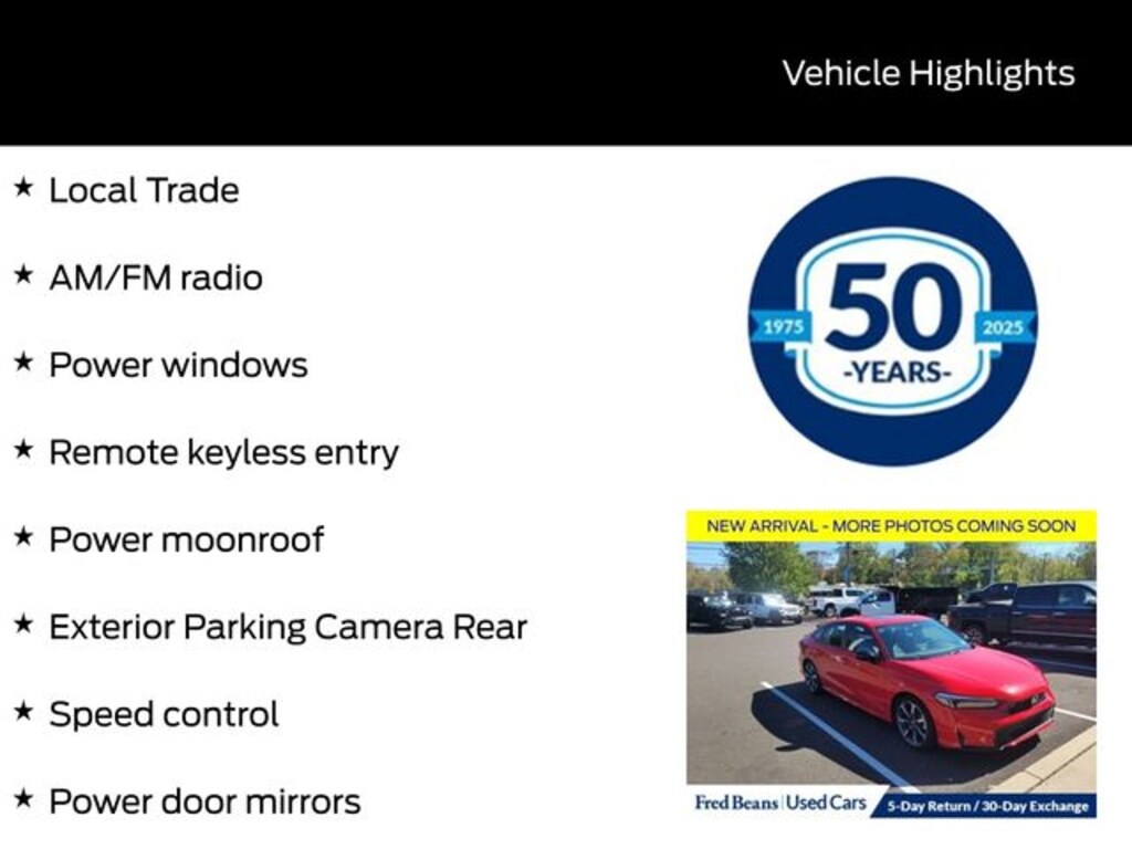 Recent Arrival! 2025 Honda Civic Hybrid Sport 2.0L 16V DOHC eCVT FWD 4D Sedan Rallye Red Local Trade, Alloy wheels, AM/FM radio, Cloth/Leatherette Seat Trim, Exterior Parking Camera Rear, Front Bucket Seats, Power door mirrors, Power moonroof, Power windows, Remote keyless entry, Speed control, Tilt steering wheel. 50/47 City/Highway MPG