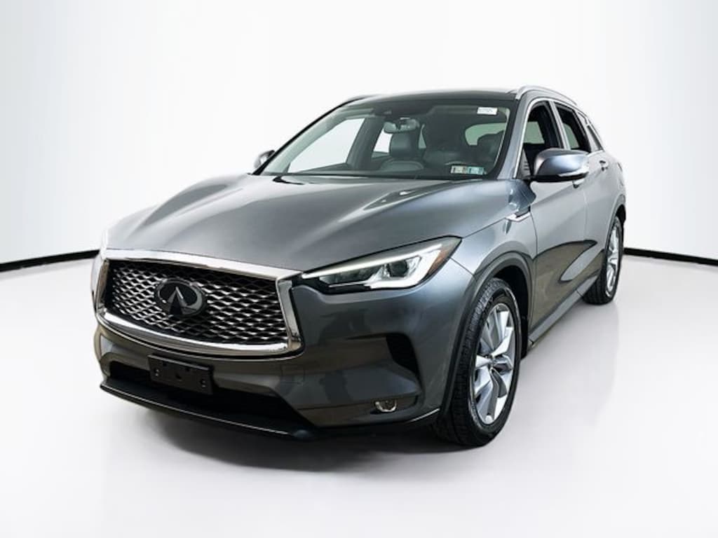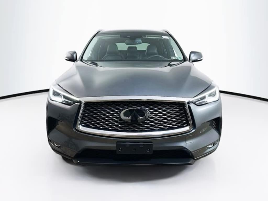 Recent Arrival! 2022 INFINITI QX50 LUXE I4 CVT AWD 4D Sport Utility Graphite Shadow 4-Wheel Disc Brakes, 5.846 Axle Ratio, 6 Speakers, ABS brakes, Air Conditioning, Alloy wheels, AM/FM radio: SiriusXM, Anti-whiplash front head restraints, Auto High-beam Headlights, Auto-dimming Rear-View mirror, Automatic temperature control, Black Splash Guards (Set of 4), Brake assist, Bumpers: body-color, CD player, Delay-off headlights, Driver door bin, Driver vanity mirror, Dual front impact airbags, Dual front side impact airbags, Electronic Stability Control, Emergency communication system: INFINITI InTouch, Exterior Parking Camera Rear, Floor Mats, Four wheel independent suspension, Front anti-roll bar, Front Bucket Seats, Front Center Armrest, Front dual zone A/C, Front fog lights, Front reading lights, Fully automatic headlights, Garage door transmitter: HomeLink, Heated door mirrors, Heated Front Bucket Seats, Heated front seats, Illuminated entry, Illuminated Kick Plates, Knee airbag, Leather Shift Knob, Leather-Appointed Seat Trim, Low tire pressure warning, Occupant sensing airbag, Outside temperature display, Overhead airbag, Overhead console, Panic alarm, Passenger door bin, Passenger vanity mirror, Power door mirrors, Power driver seat, Power Liftgate, Power moonroof, Power passenger seat, Power steering, Power windows, Radio data system, Radio: HD Audio System, Rear anti-roll bar, Rear Parking Sensors, Rear reading lights, Rear seat center armrest, Rear side impact airbag, Rear window defroster, Rear window wiper, Remote keyless entry, Security system, Speed control, Speed-sensing steering, Speed-Sensitive Wipers, Split folding rear seat, Spoiler, Steering wheel mounted audio controls, Tachometer, Telescoping steering wheel, Tilt steering wheel, Traction control, Trip computer, Turn signal indicator mirrors, Variably intermittent wipers, Wheels: 19" Silver Painted Aluminum Alloy.