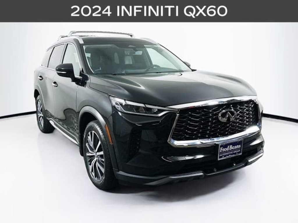 2024 INFINITI QX60 Sensory 3.5L V6 DOHC 24V 9-Speed Automatic AWD 4D Sport Utility Mineral Black Great Service History, 3 Month / 4,000 Mile Comprehensive Warranty, Apple CarPlay/Android Auto, Bose Performance Series 17-Speaker Sound System, Climate Controlled Front Bucket Seats, Exterior Parking Camera Rear, Navigation system: INFINITI InTouch Navigation, Power moonroof.