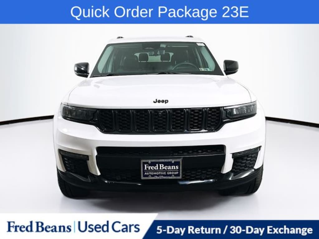2023 Jeep Grand Cherokee L Limited 3.6L V6 24V VVT 8-Speed Automatic 4WD 4D Sport Utility Bright White Clearcoat 2nd Row Manual Window Shades, Auto-Dimming Exterior Driver Mirror, Black Appearance Package, Capri Leatherette w/Axis II Seats, Gloss Black Exterior Accents, Heated front seats, Heated rear seats, Heated steering wheel, Integrated Off-Road Camera, Intersection Collision Assist System, Luxury Tech Group II, Memory Steering Column, Molded In Color Black/Gloss Black Roof Rails, Navigation System, ParkSense Front/Rear Park Assist w/Stop, Passive Entry - Front/Rear Doors, Liftgate, Power Liftgate, Power Tilt/Telescope Steering Column, Quick Order Package 23E, Rain Sensitive Windshield Wipers, Rear Back Up Camera Washer, Rearview Autodim Digital Display Mirror, Surround View Camera System, Ventilated Front Seats, Wheels: 20" x 8.5" Gloss Black Painted Aluminum, Wireless Charging Pad.