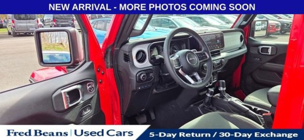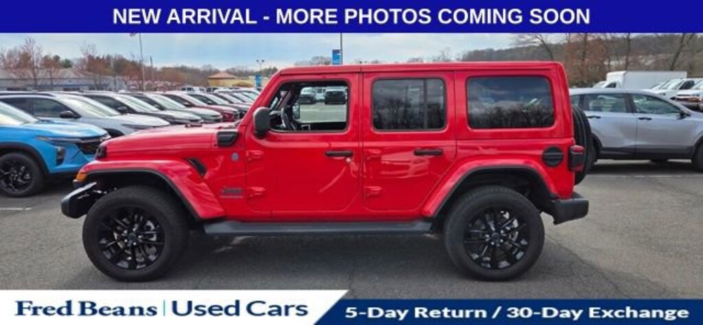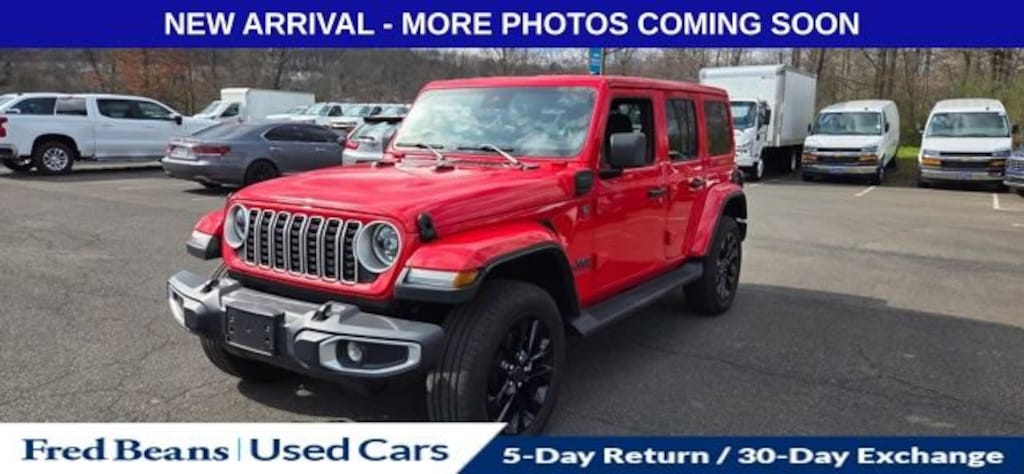 Discover the 2025 Jeep Wrangler Sahara 4xe, a remarkable blend of off-road capability and eco-friendly performance. This stunning Firecracker Red Clearcoat model boasts a host of premium features that will elevate your driving experience.