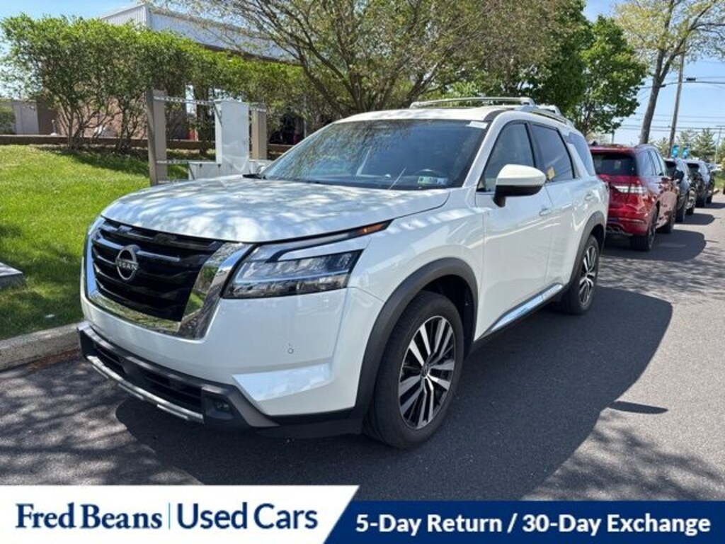 Experience top-tier comfort, technology, and capability with this 2023 Nissan Pathfinder Platinum, finished in elegant Pearl White Tricoat. A CARFAX One-Owner with a clean history and great service record, this Triton Certified SUV delivers premium features with long-term peace of mind.