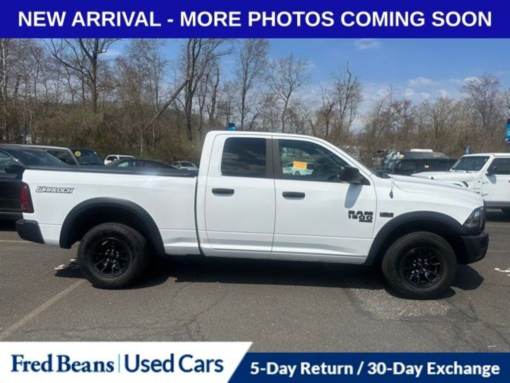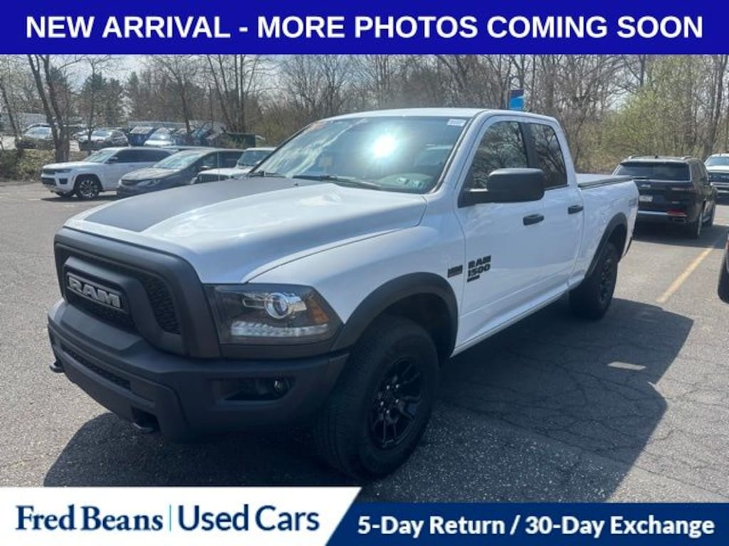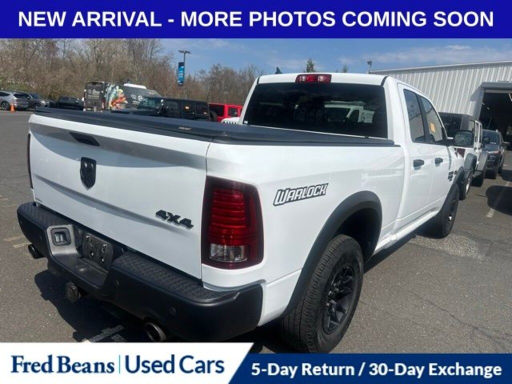 Recent Arrival! 2022 Ram 1500 Classic Warlock HEMI 5.7L V8 Multi Displacement VVT 8-Speed Automatic 4WD 4D Quad Cab Bright White Clearcoat 4G LTE Wi-Fi Hot Spot, 4x4 Flat Black Badge, 8.4" Touchscreen Display, Air Conditioning ATC w/Dual Zone Control, Apple CarPlay, Audio Input Jack for Mobile Devices, Auto-Dimming Rear-View Mirror, B-Pillar Black Out, Bi-Function Halogen Projector Headlamps, Black Exterior Truck Badging, Black Grille w/RAM Lettering, Black Headlamp Filler Panel, Black Powder Coated Front Bumper, Black Powder Coated Rear Bumper, Black RAM Head Tailgate Badge, Black Wheel Flares, Center Hub, Cluster 7.0" TFT Color Display, Electronics Group, Flat Black 5.7L Hemi Badge, Front LED Fog Lamps, Front Wheel Well Liners, Google Android Auto, GPS Antenna Input, Integrated Center Stack Radio, Integrated Voice Command w/Bluetooth, Media Hub (2 USB, AUX), MOPAR Front & Rear Rubber Floor Mats, ParkSense Rear Park Assist System, Quick Order Package 27F Warlock, Radio: Uconnect 5 w/8.4" Display, Raised Ride Height, Rear Extra HD Shock Absorbers, Remote Start & Security Alarm Group, Remote Start System, Remote USB Port, Security Alarm, Semi-Gloss Black Hub, SiriusXM Guardian - Included Trial (B), Sport Tail Lamps, USB Host Flip, Utility Group, Warlock, Warlock All Terrain Package, Warlock Interior Accents, Wheels: 17" x 8" Matte Black Aluminum, Wheels: 20" x 9" Semi-Gloss Black Aluminum.